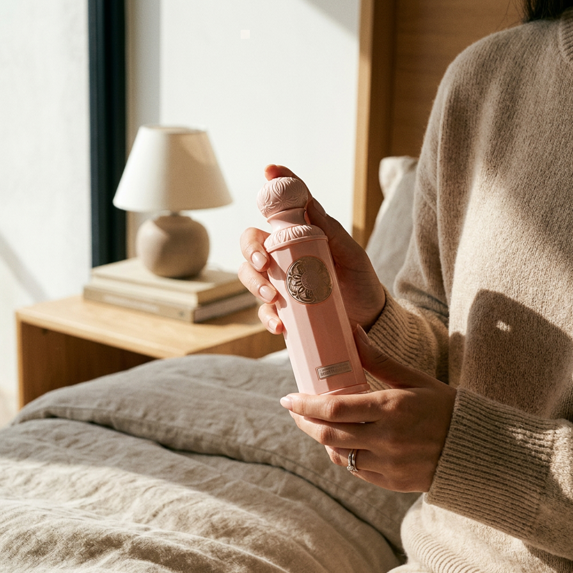زاوية التصميم الفاخر زجاجة بنفسجية بزخارف عربية تعكس الفخامة