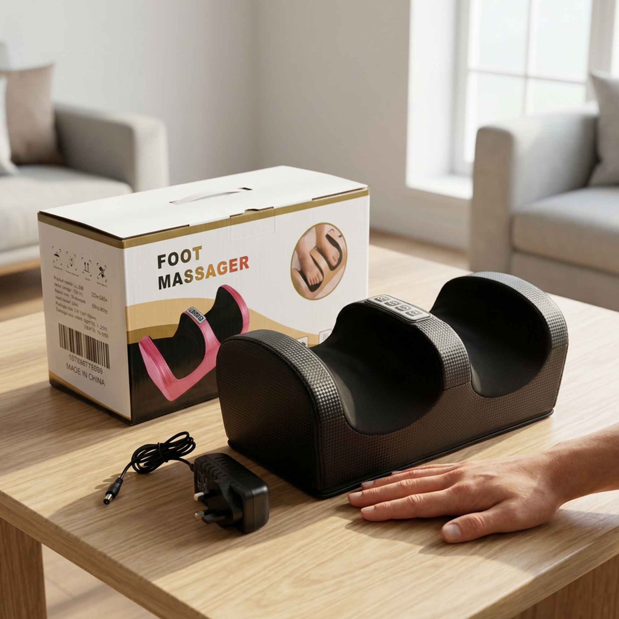أفكار المحتوى: الراحة اليومية: يخفف تعب الرجلين بعد يوم طويل من المشي أو الوقوف. التدليك العميق: يحتوي على نقاط تدليك متعددة تعمل على عضلات القدمين. الاستخدام السهل: تشغيله بسيط جداً يناسب كبار السن والشباب . الاسترخاء الكامل: يعطي شعور بالراحة والاسترخاء بعد الاستخدام مباشرة في دقايق قليلة. ـــــــــــــــــــــــــــــــــــــــــــــــــــــــــــــــــــــــــــــــــــــــــــــــــــــــــــــــــــــــــــــــــــــــــــــــــــــــــــ المميزات: الجهاز يعمل بجهد 12 فولت وهو آمن للاستخدام اليومي. يشتغل لمدة 15 دقيقة فقط في كل جلسة ويتوقف تلقائياً. يحتوي على أزرار تحكم سهلة لتعديل قوة التدليك. التصميم مريح يناسب مقاس معظم أحجام الأقدام. خفيف الوزن وسهل حمله وتخزينه في أي مكان. يأتي مع دليل استخدام واضح وشهادة ضمان رسمية. يعمل بهدوء وما يسبب إزعاج أثناء الاستخدام. مصنوع من مواد متينة وآمنة وسهل تنظيفه. يحسن الدورة الدموية في القدمين ويخفف . مناسب للاستخدام بعد يوم عمل طويل أو بعد الرياضة. المواصفات: اسم المنتج: Foot Massager الموديل: LL-Z06 الماركة: جينريك الضمان: عامين وكيل الضمان: دوزن الجهد: 12V القوة: 24W الزمن المحدد: 15 دقيقة حجم العبوة: 330 × 145 × 190 مم صنع في: الصين ـــــــــــــــــــــــــــــــــــــــــــــــــــــــــــــــــــــــــــــــــــــــــــــــــــــــــــــــــــــــــــــــــــــــــــــــــــــــــــ محتويات المنتج: 1 x جهاز المساج للقدمين الرئيسي 1 x دليل الاستخدام 1 x كرت الضمان والشهادة 1 x سلك الطاقة (أداپتر)